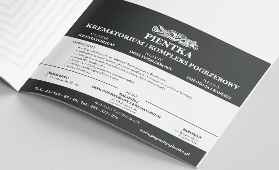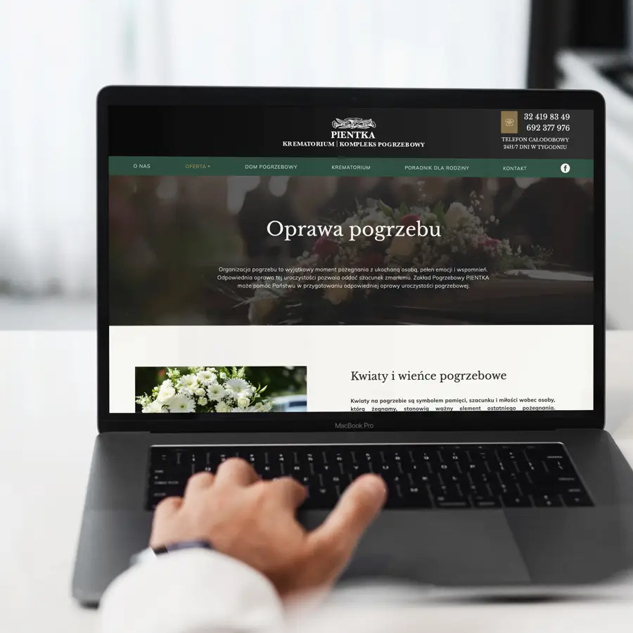 Zrealizowane działania pozwoliły stworzyć spójną, nowoczesną i funkcjonalną komunikację Kompleksu Pogrzebowego PIENTKA zarówno w przestrzeni online, jak i offline. Nowa, responsywna strona internetowa stała się przejrzystym i intuicyjnym narzędziem, które w sposób spokojny i zrozumiały prowadzi użytkowników przez zakres oferowanych usług oraz niezbędne formalności. Szczególną wartością okazała się część poradnikowa, pełniąca rolę przewodnika dla osób, które znalazły się w trudnym emocjonalnie momencie i potrzebują jasnych wskazówek.