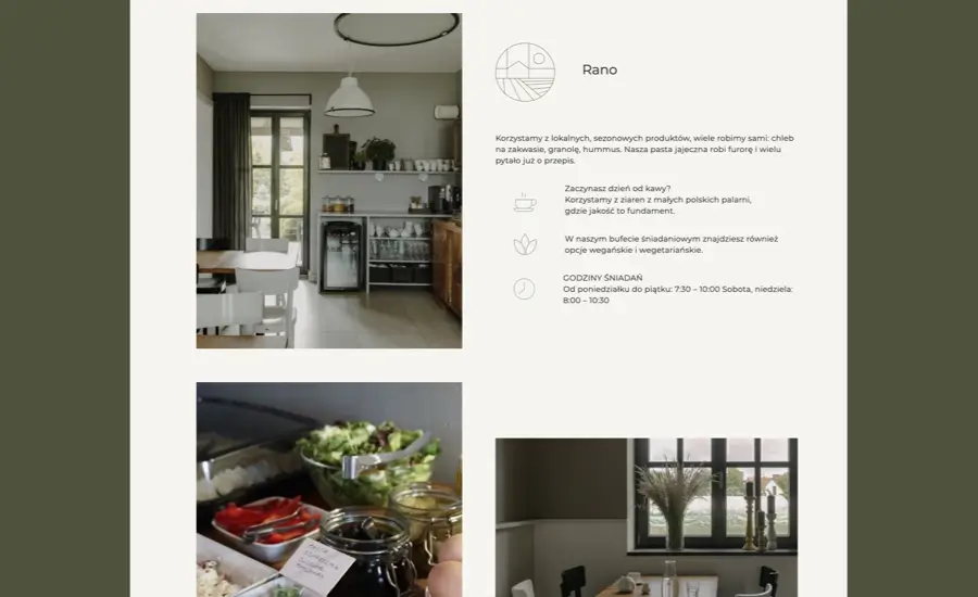 - Estetyczny, minimalistyczny i przyjazny w odbiorze projekt graficzny, zgodny ze stylem pensjonatu.