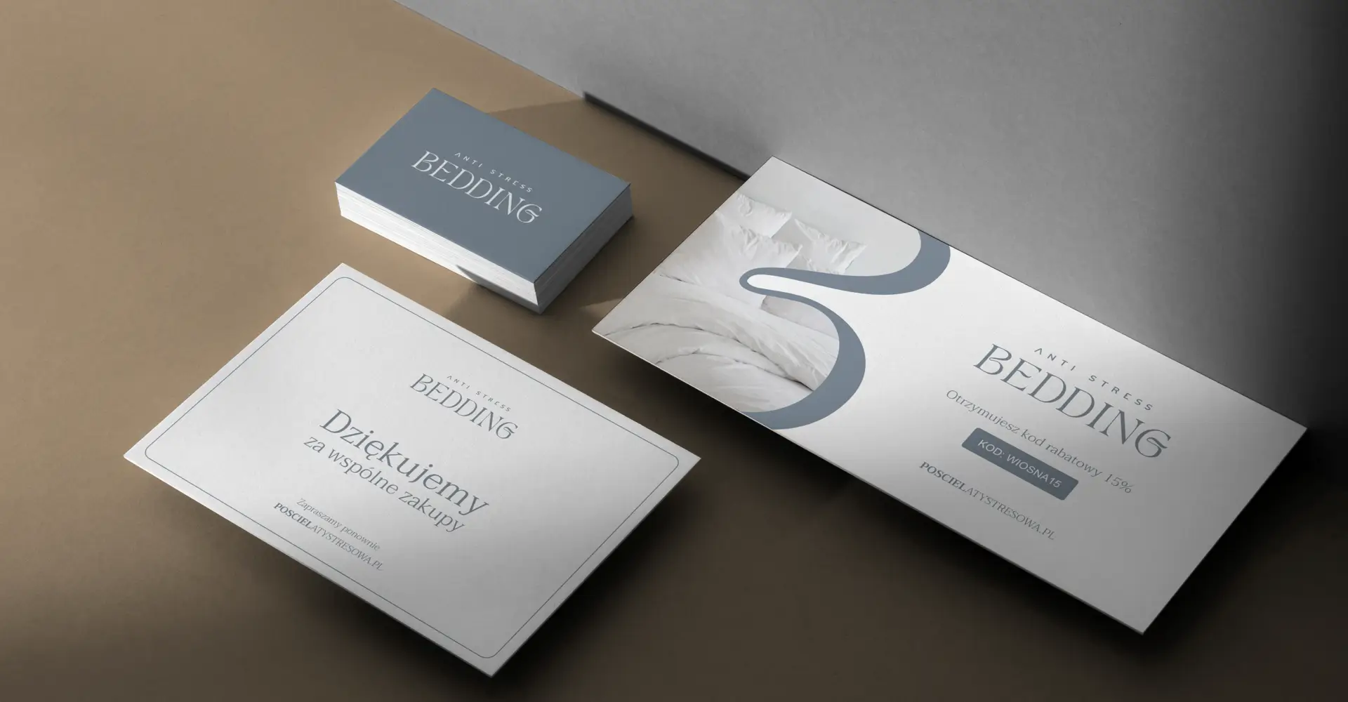 Spójność komunikacji marki została dodatkowo wzmocniona poprzez projekt graficzny materiałów reklamowych drukowanych, które przenoszą wypracowany styl wizualny również do działań offline. W efekcie marka Anti Stress Bedding zyskała profesjonalny, uporządkowany wizerunek oraz skuteczne narzędzie sprzedażowe.