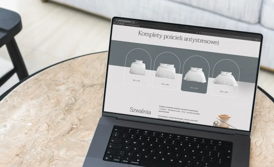 Klientowi zależało na stworzeniu spójnej marki oraz rozwiązania, które nie tylko umożliwi sprzedaż, ale również w przystępny sposób wyjaśni ideę produktów i ich wpływ na zdrowie oraz komfort snu.